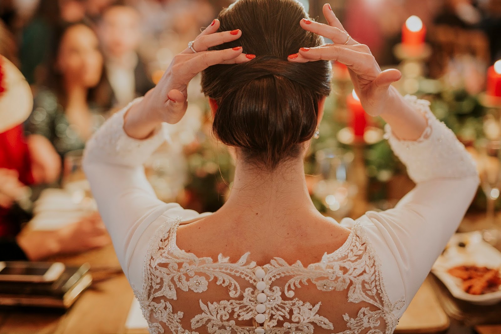 La celebración tuvo lugar en los diferentes espacios que ofrece la finca: pinada para el cóctel, amenizado por pianista y saxofonista; carpa para la comida y la fiesta. Ésta fue transformada con una espectacular decoración navideña en la que además se combinaron manteles tartán y verdes, sillas napoleón y cross back y diferentes tipos de mesas redondas y rectangulares de madera. Para el catering escogieron al grupo Juan XXIII.